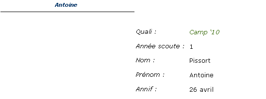 Quali : Année scoute : Nom : Prénom : Annif : |